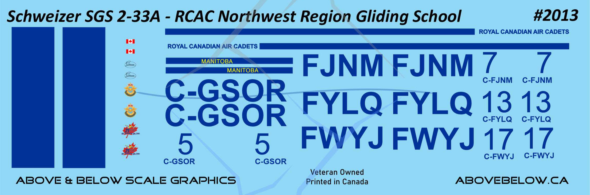 Choice of four registrations. Markings for Royal Canadian Air Cadets Northwest Region Gliding School in Gimli Manitoba.